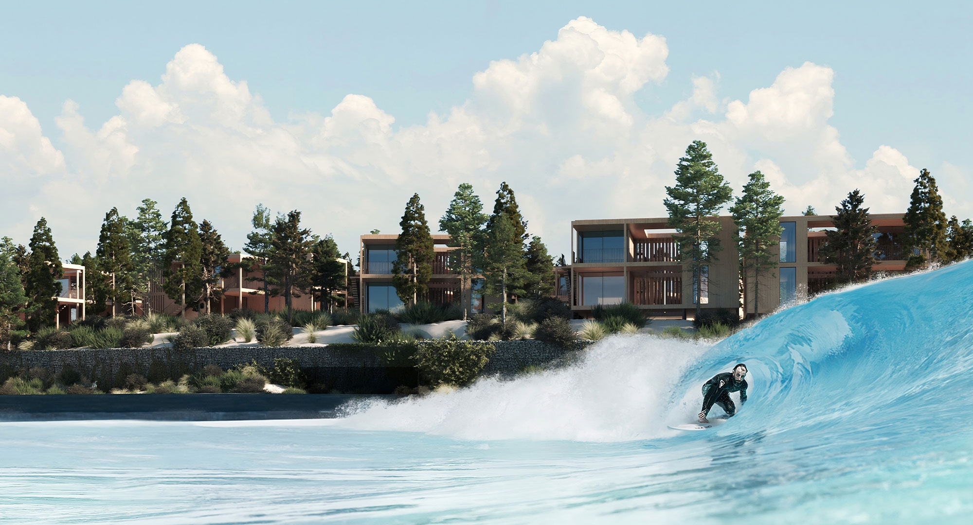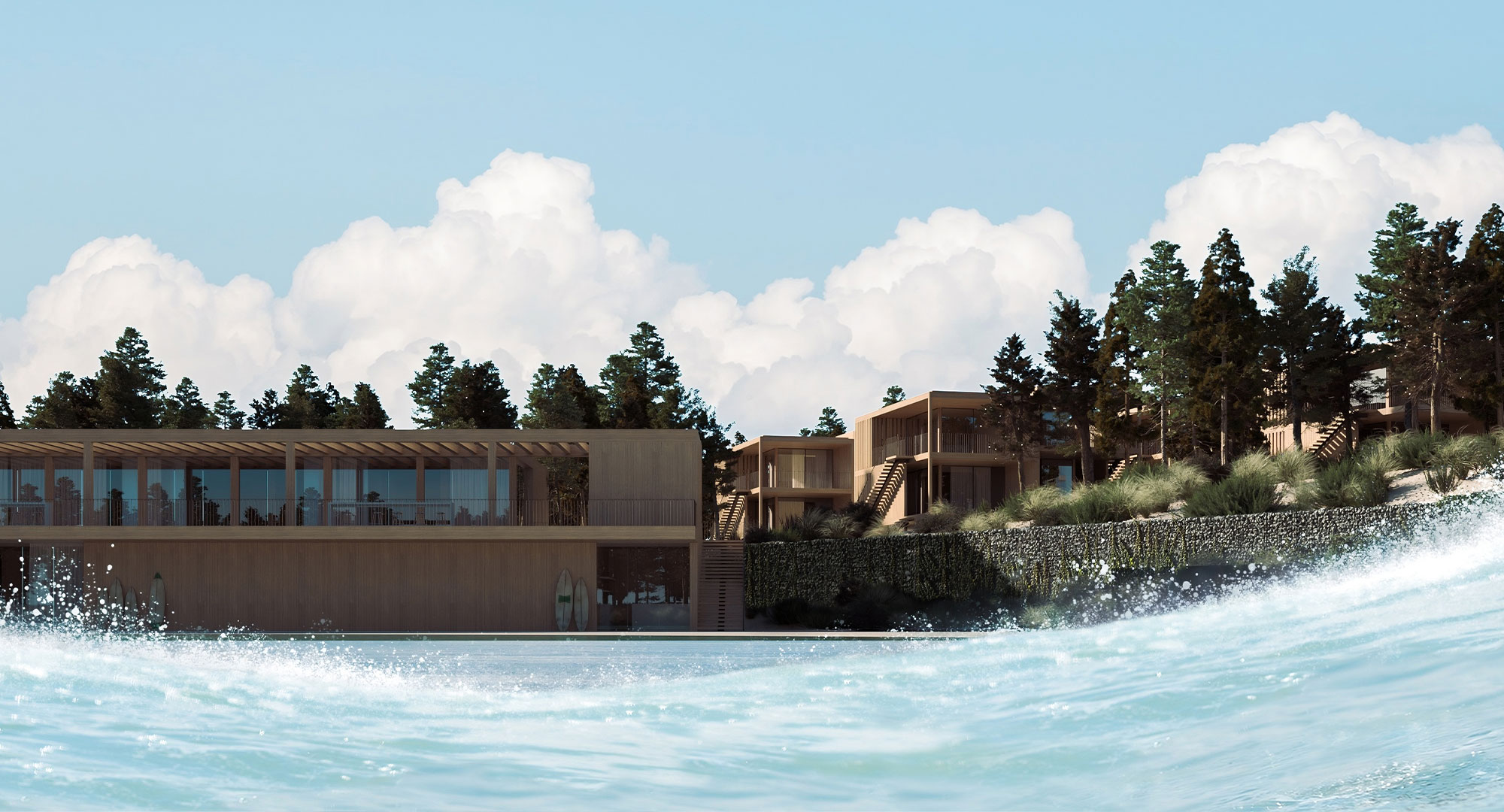 No centro da Surfers Cove está a tecnologia Wavegarden, reconhecida mundialmente pela sua eficiência energética e capacidade de gerar ondas de elevada qualidade com baixo impacto ambiental.